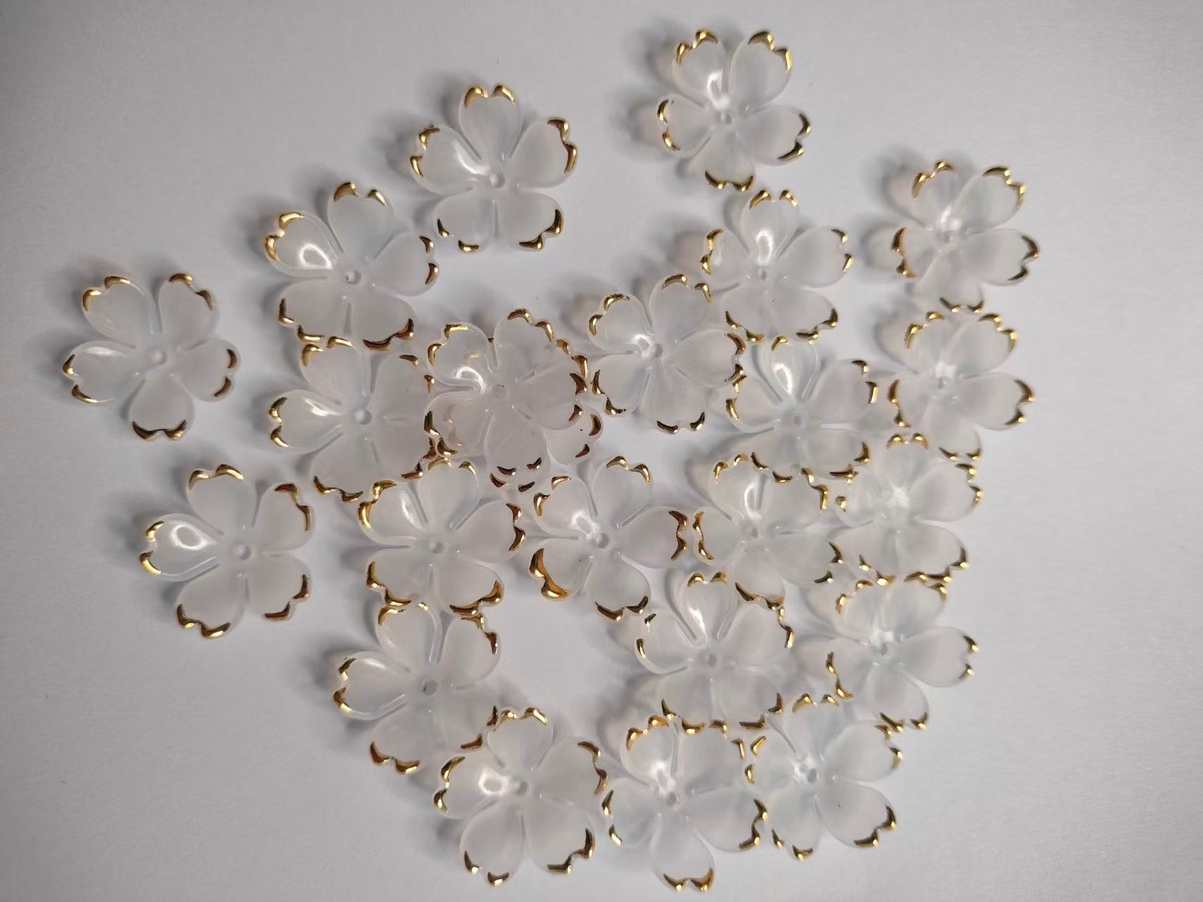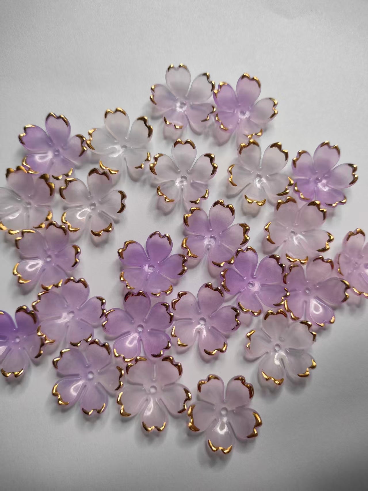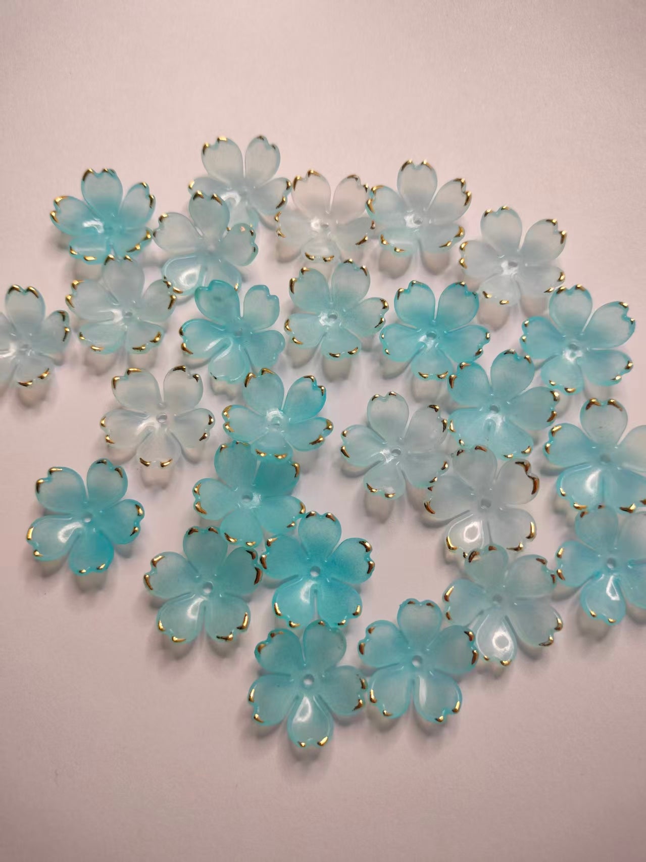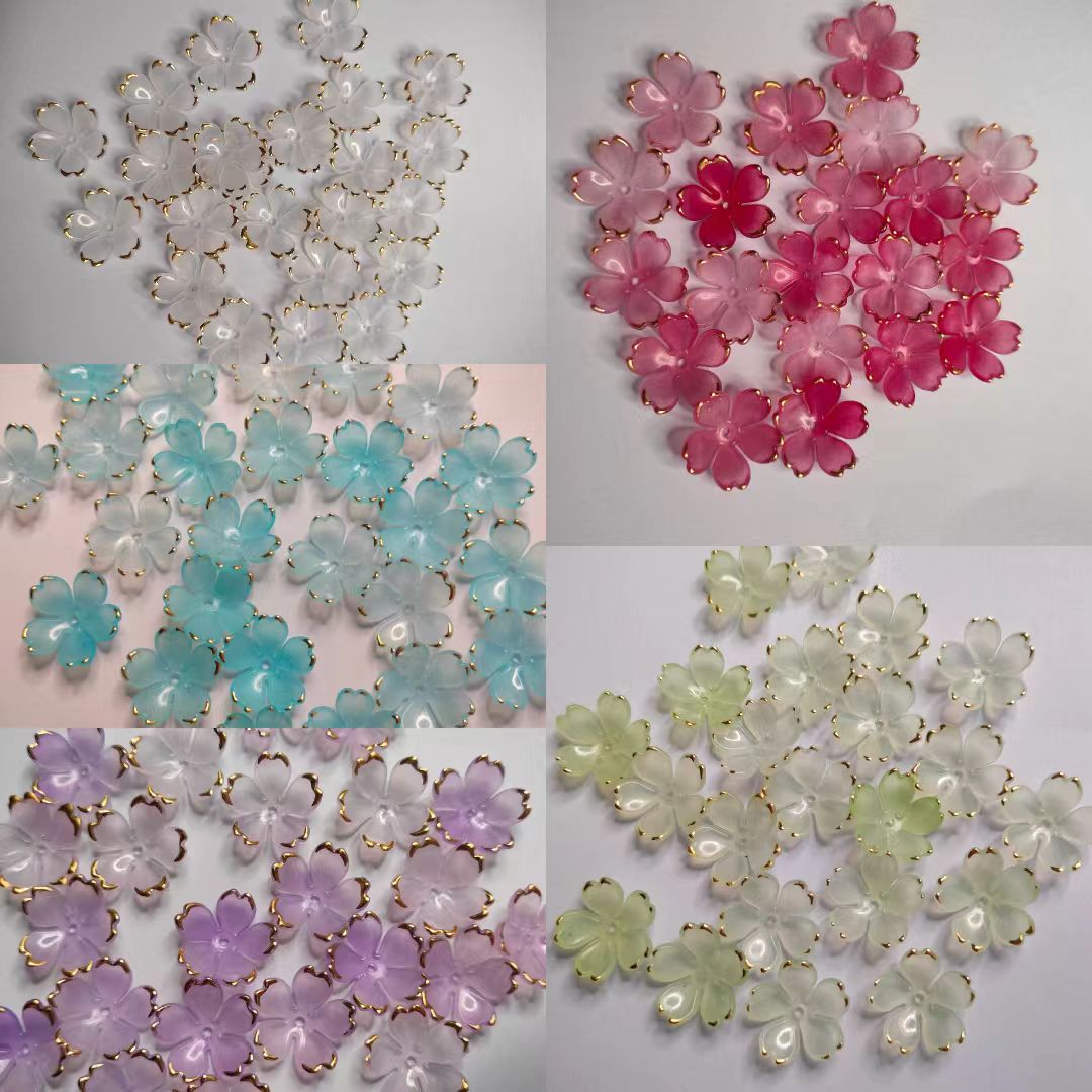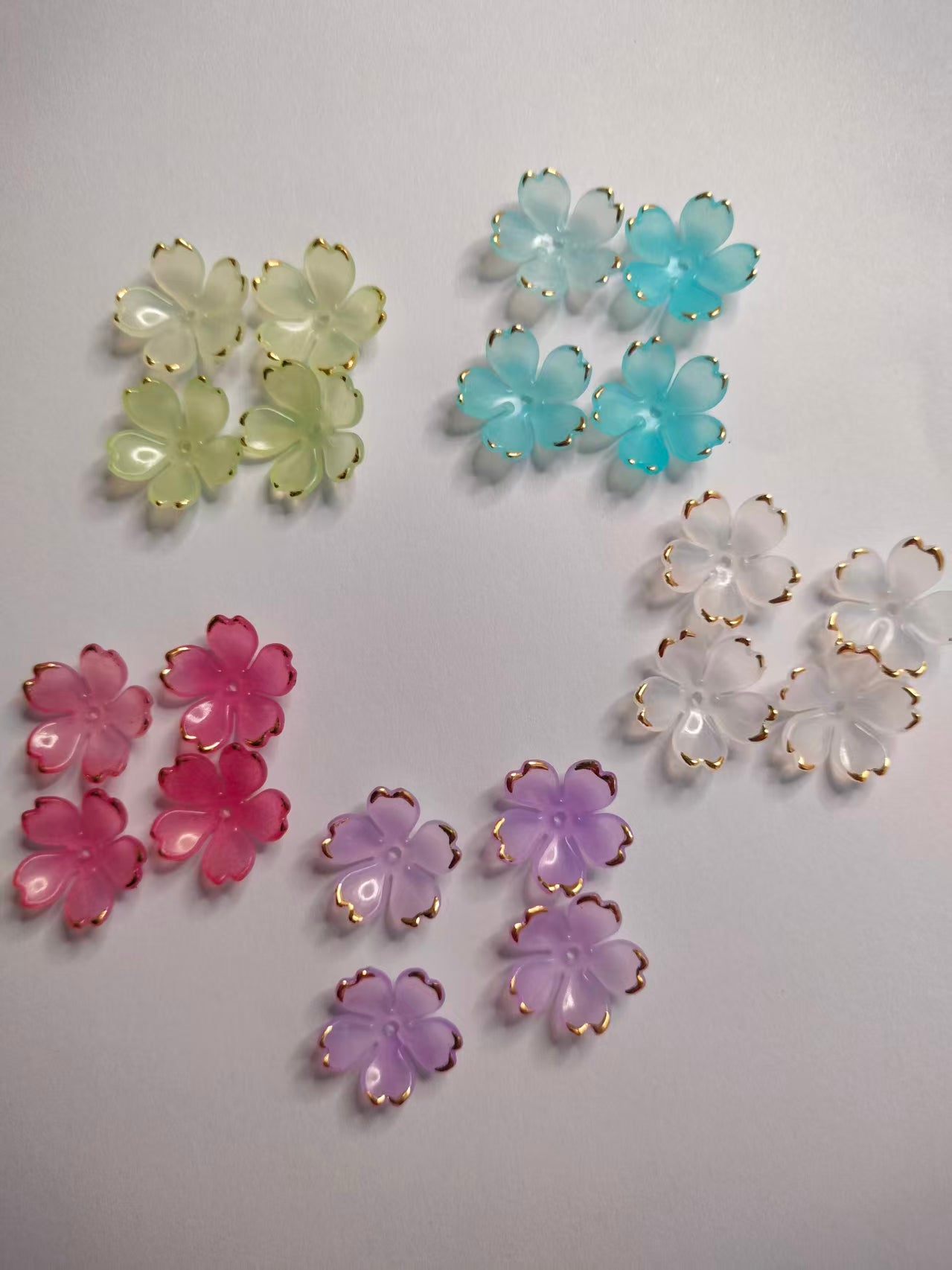Acrylic Bead Caps, 5-Petal Flower, Mixed Color with Gold-tone Edge, (pastel spring summer cottagecore floral petals)